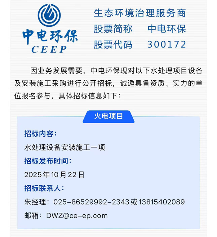 中電環(huán)保股份有限公司是南京市首家環(huán)保上市公司(股票簡稱:中電環(huán)保,股票代碼:300172),南京環(huán)保產(chǎn)業(yè)協(xié)會會長單位,國家級聯(lián)盟理事長單位,是生態(tài)環(huán)境治理服務商,主營(3+1):水務、固危廢、煙氣治理及產(chǎn)業(yè)創(chuàng)新平臺,包括:工業(yè)水處理、污水處理及水環(huán)境綜合治理;固危廢土壤、污泥餐廚垃圾處理;煙氣及VOCS治理;智慧環(huán)保;高端裝備等。