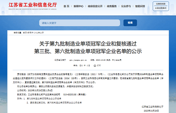 近日,江蘇省工業(yè)和信息化廳公布了《第九批制造業(yè)單項冠軍企業(yè)名單》,中電環(huán)保憑借核心產(chǎn)品“核電凝結(jié)水精處理設(shè)備”成功登榜,榮獲“制造業(yè)單項冠軍”這一國家級重磅榮譽。這不僅是對公司技術(shù)實力與市場地位的高度認(rèn)可,也是中電環(huán)保在深耕工業(yè)水處理領(lǐng)域三十年征程中的又一重要里程碑。